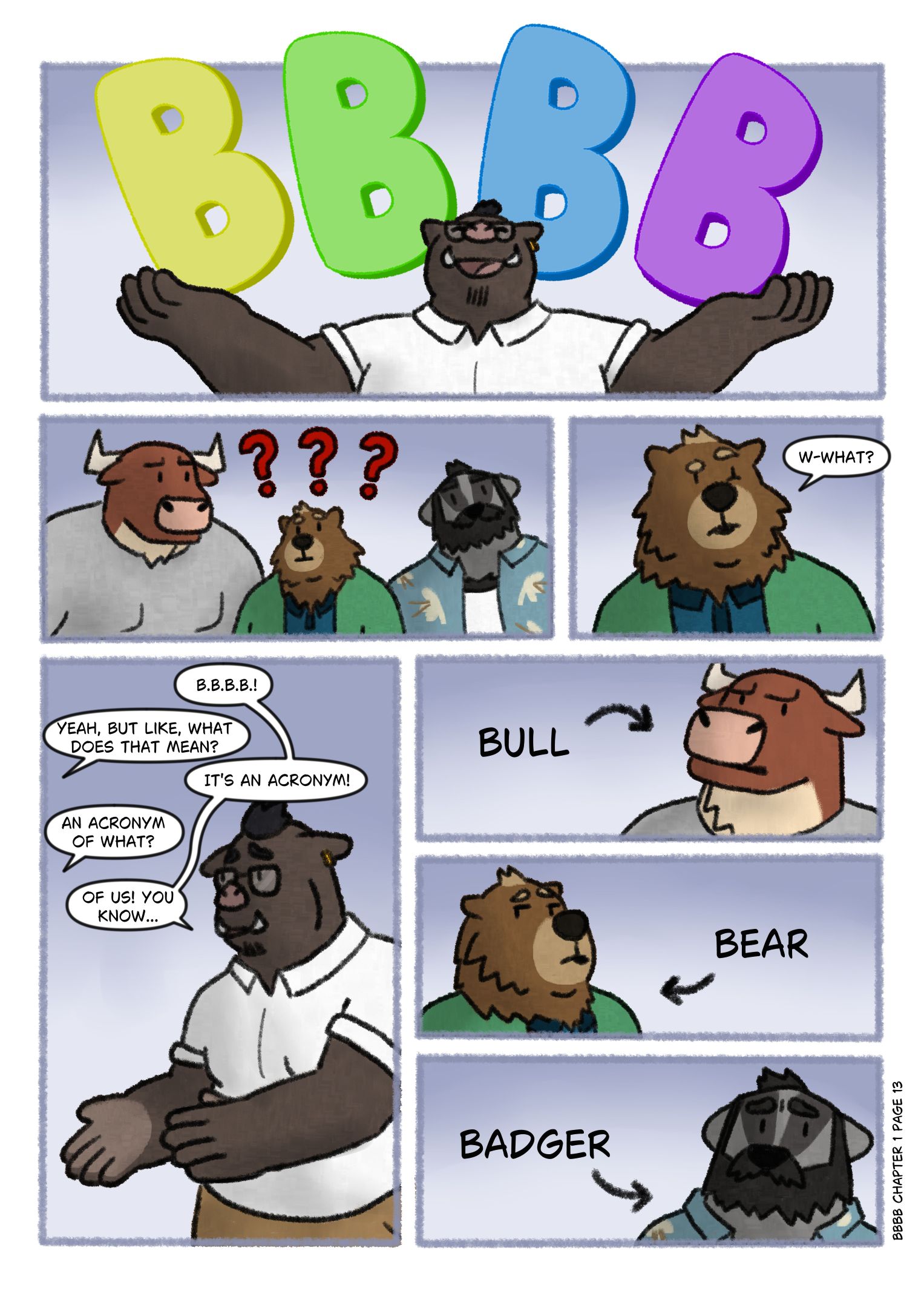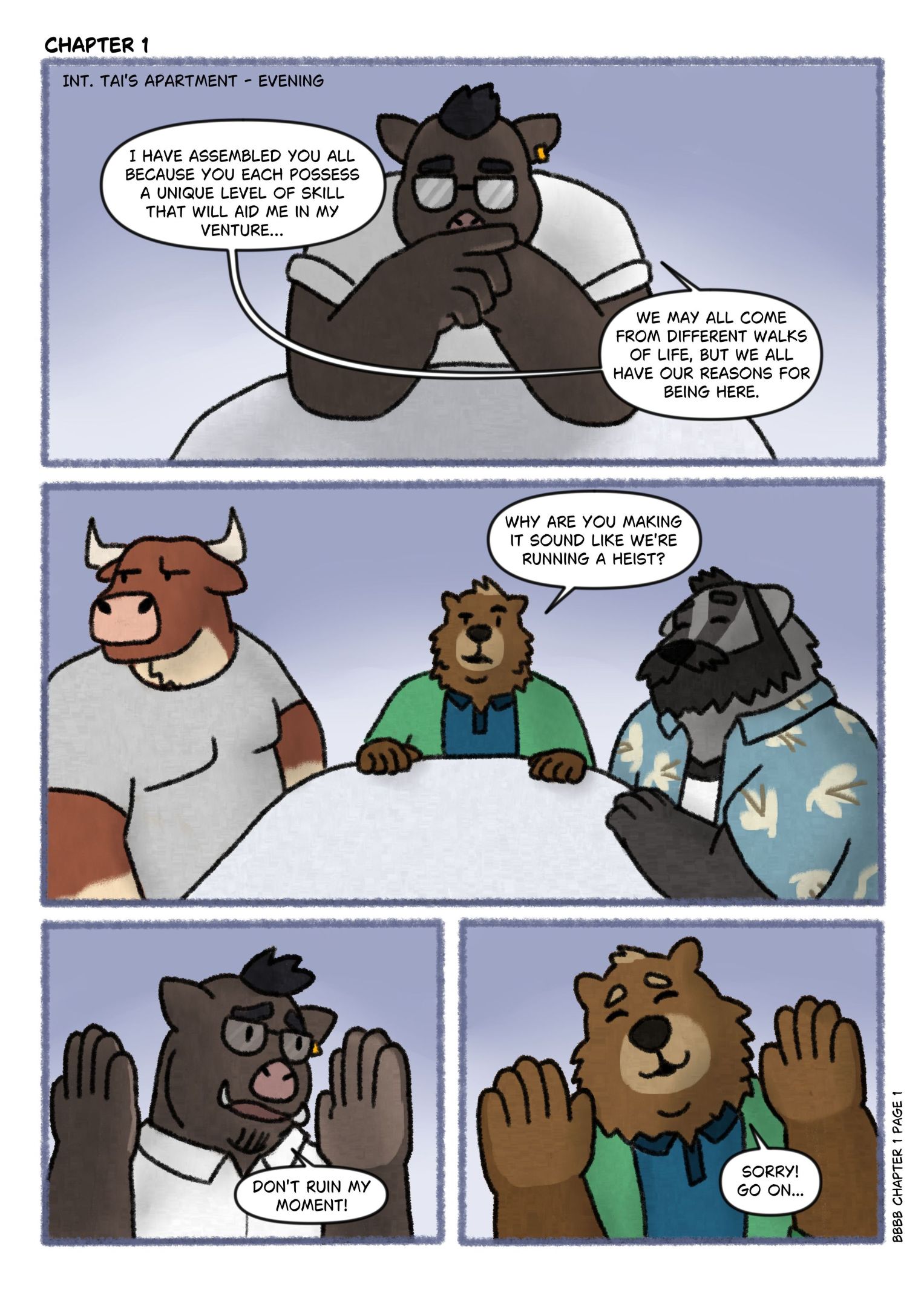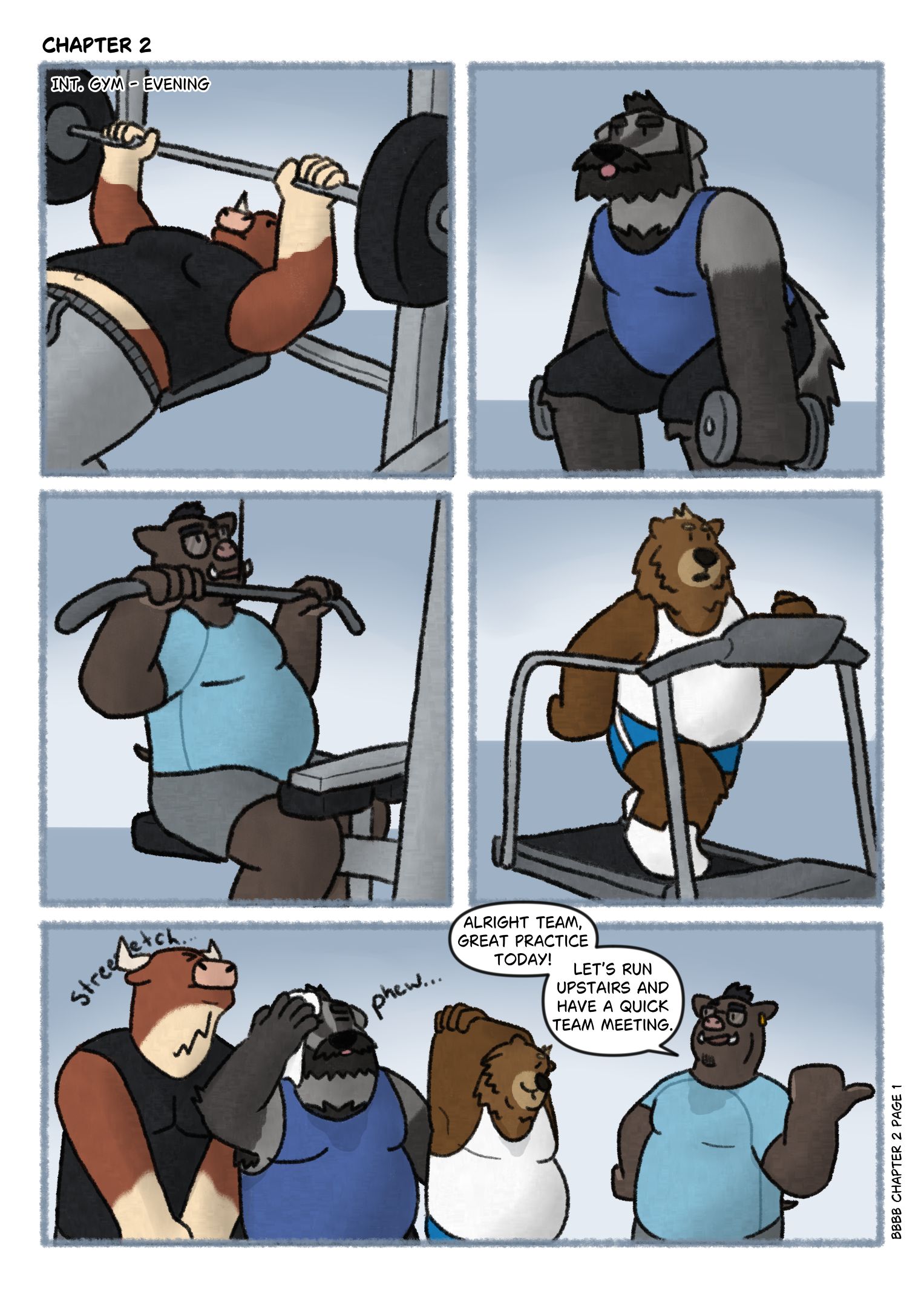 BBBB is a light-hearted slice of life comic about four unlikely friends who join an amateur wrestling league. What kind of shenanigans will these four goofballs get up to?